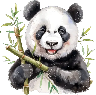 Watercolor Happy Panda with Bamboo DTF Transfer