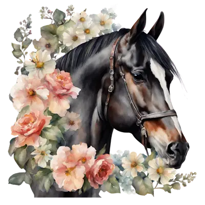 Watercolor Horse Floral DTF Transfer | Elegant Equine Design