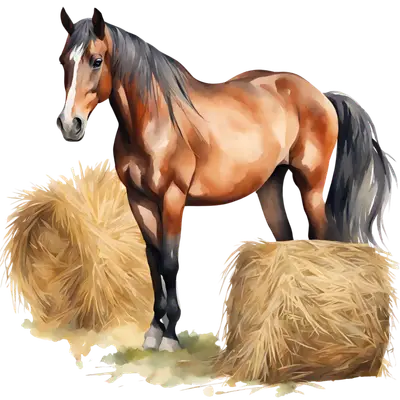 Watercolor Horse & Hay Bale DTF Transfer - Rustic Farm Animal Design