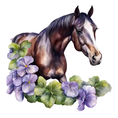 Watercolor Horse & Purple Pansies DTF Transfer | Elegant Floral Equestrian Design