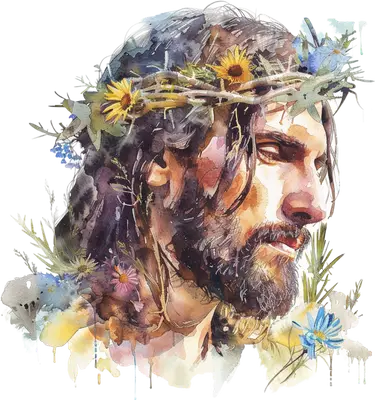 Watercolor Jesus Crown of Thorns DTF Transfer | Floral Christian Art