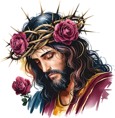 Watercolor Jesus Crown of Thorns & Roses DTF Transfer for Apparel
