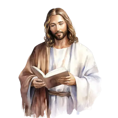 Watercolor Jesus Reading Bible DTF Transfer - Scripture Art