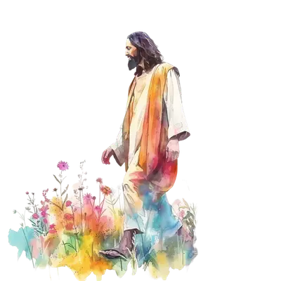 Watercolor Jesus Walking in Flowers DTF Transfer