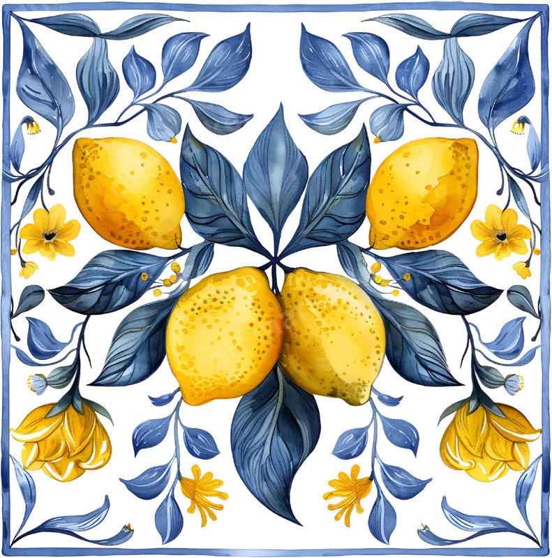 Watercolor Lemon & Blue Leaf DTF Transfer - Botanical Heat Transfer Design
