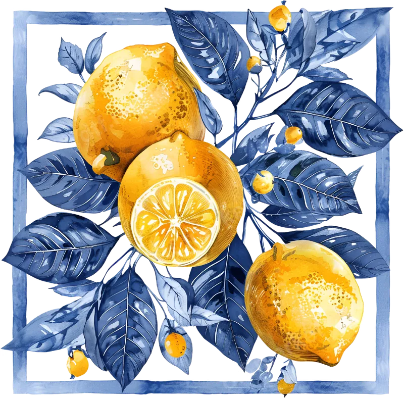 Watercolor Lemon & Blue Leaves DTF Transfer – Fresh Botanical Art