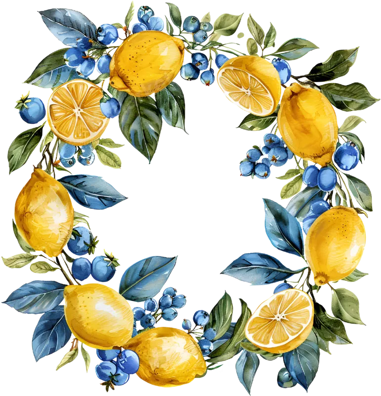 Watercolor Lemon Blueberry Wreath | DTF Ready to Press Heat Transfer