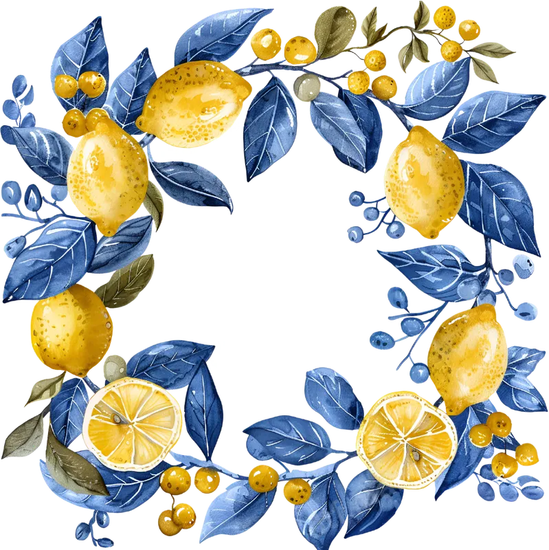 Watercolor Lemon Indigo Wreath DTF Transfer | Botanical Ready to Press Design