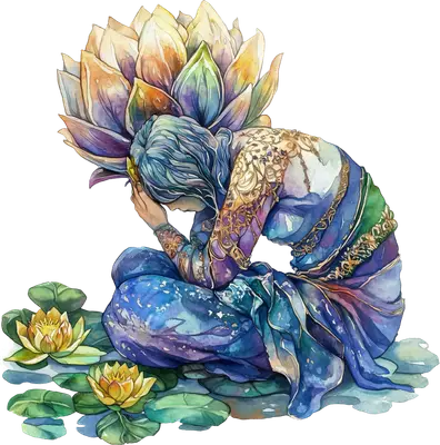 Watercolor Lotus Flower Figure DTF Transfer | Meditative Floral Art