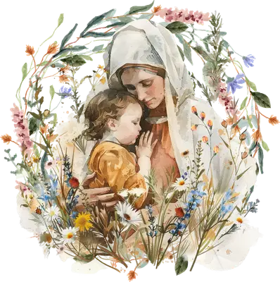 Watercolor Madonna & Child Floral Wreath DTF Transfer