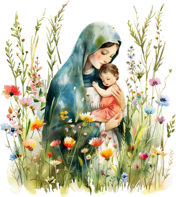 Watercolor Mary and Baby Jesus Wildflowers DTF Transfer