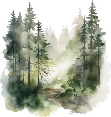 Watercolor Misty Forest Pine Trees DTF Transfer