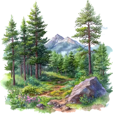 Watercolor Mountain Forest Path DTF Transfer