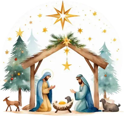 Watercolor Nativity Christmas DTF Transfer | Holy Family Manger Scene