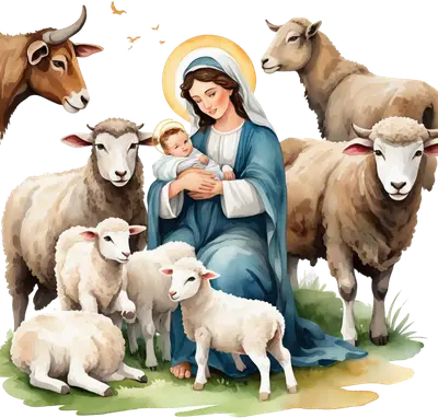 Watercolor Nativity DTF Transfer - Mary, Baby Jesus, Farm Animals
