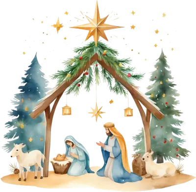 Watercolor Nativity Scene Christmas DTF Transfer - Stable, Mary, Joseph, Jesus