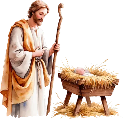 Watercolor Nativity Scene DTF Transfer - Joseph & Baby Jesus Manger
