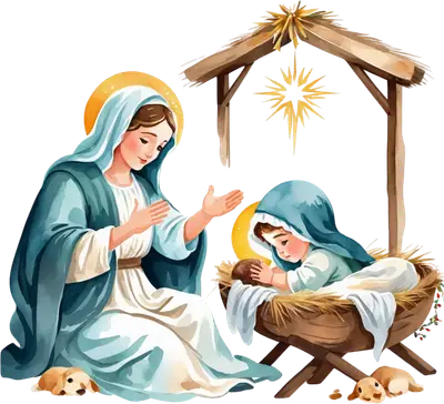 Watercolor Nativity Scene DTF Transfer - Mary & Baby Jesus Manger