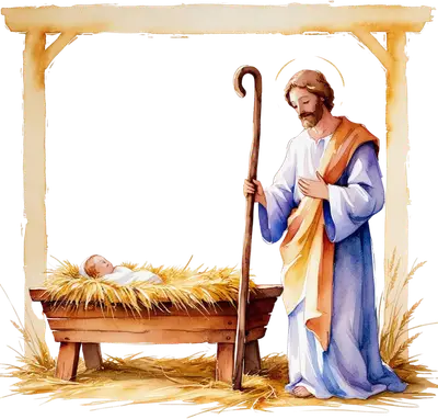 Watercolor Nativity Scene Joseph & Baby Jesus DTF Transfer
