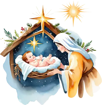 Watercolor Nativity Scene Mary & Baby Jesus DTF Transfer for Christmas