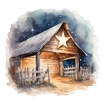 Watercolor Nativity Stable Star DTF Transfer | Christmas Ready to Press