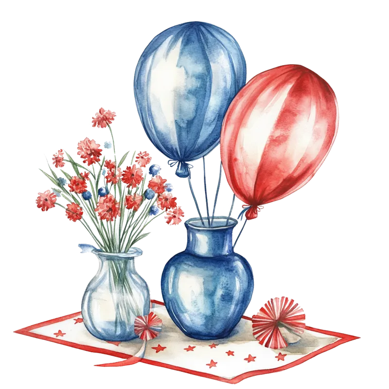 Watercolor Patriotic Balloons & Flowers DTF Transfer - July 4th Celebration Ready to Press