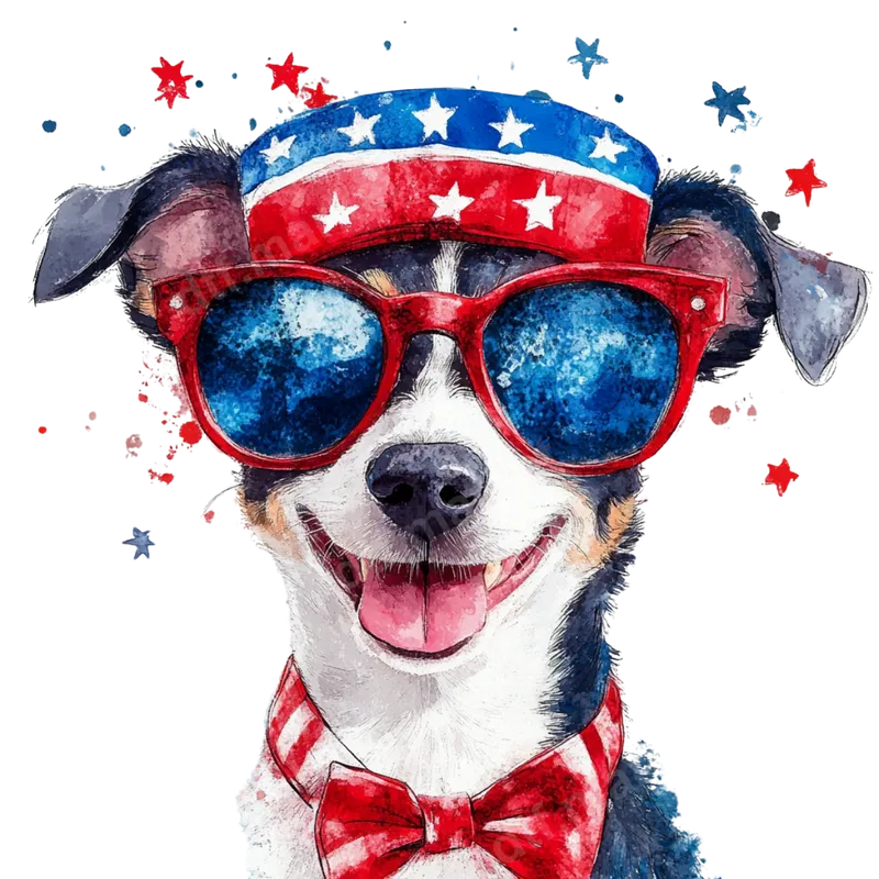 Watercolor Patriotic Dog DTF Transfer - 4th of July Heat Press Ready Design