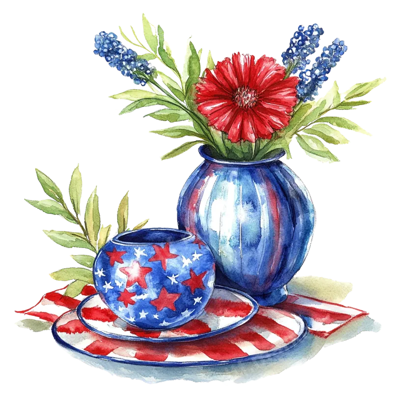 Watercolor Patriotic Floral Vase DTF Transfer | 4th of July Heat Press Design