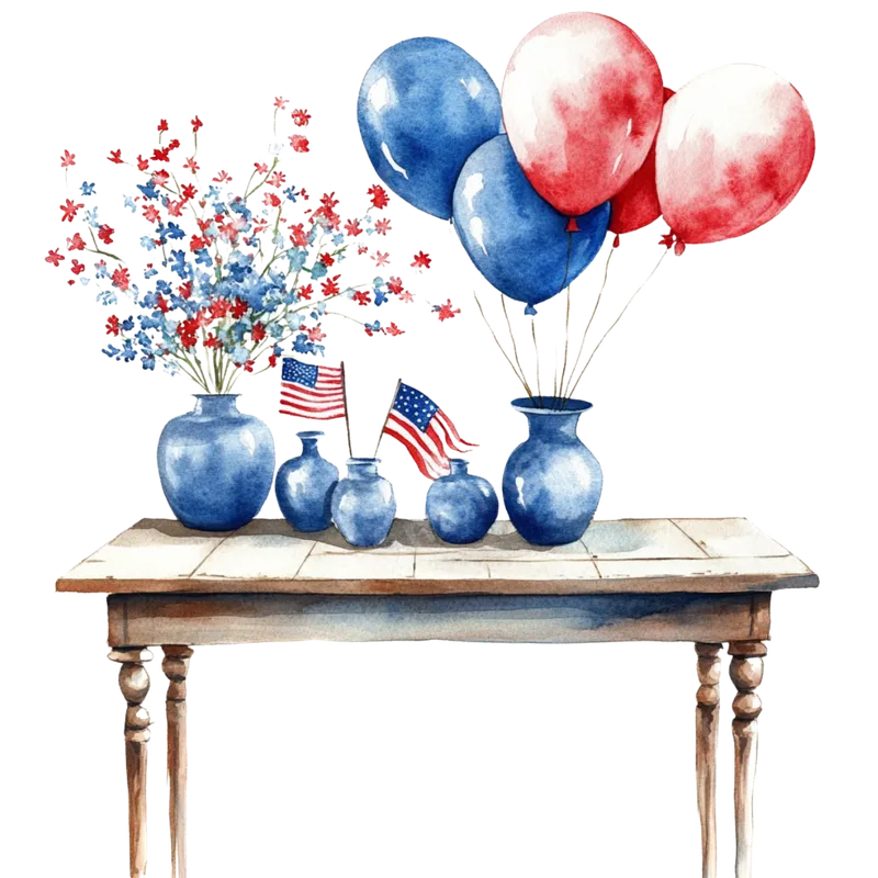 Watercolor Patriotic Table Setting DTF Transfer - USA Flags & Balloons