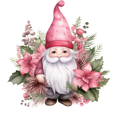 Watercolor Pink Christmas Gnome DTF Transfer | Holiday Poinsettia Design