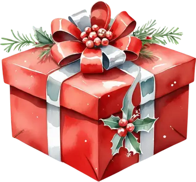 Watercolor Red Christmas Gift Box DTF Transfer with Holly & Pine