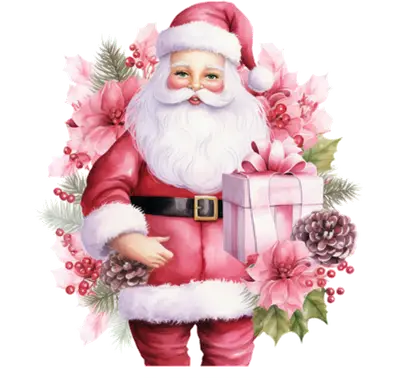 Watercolor Santa Claus DTF Transfer with Pink Poinsettias