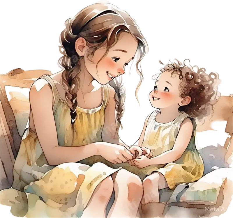 Watercolor Sisters Love DTF Transfer - Mother Daughter Bond Design