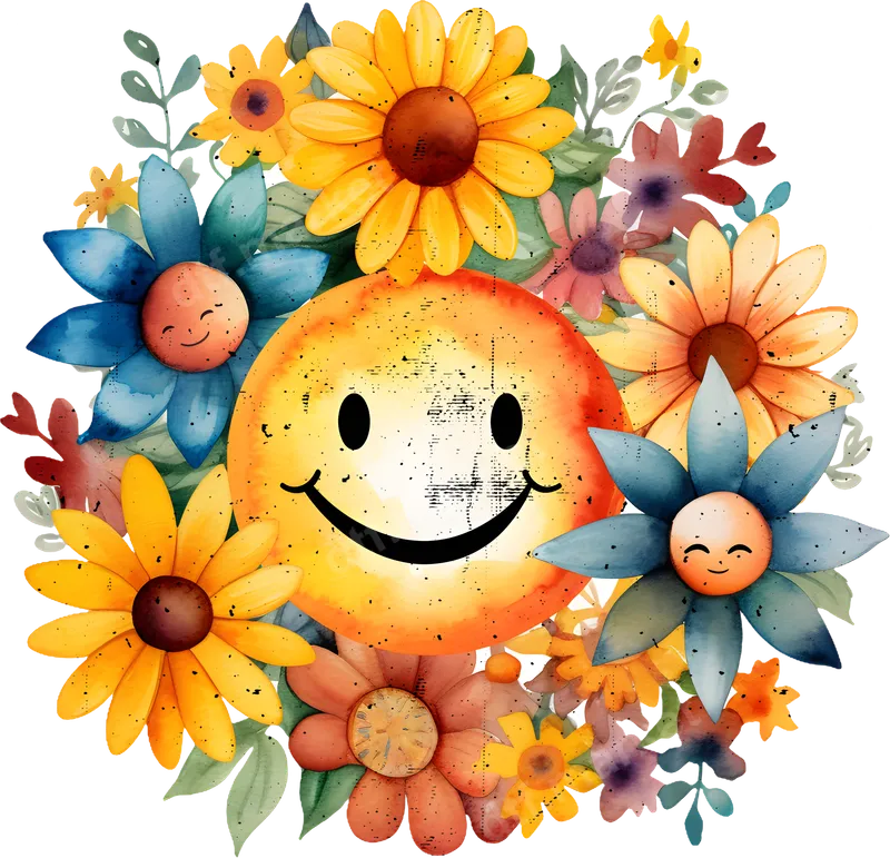 Watercolor Smiley Face & Floral DTF Transfer | Happy Flower Power