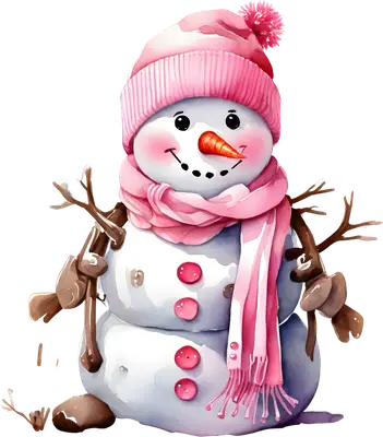 Watercolor Snowman DTF Transfer - Pink Hat & Scarf Christmas Design