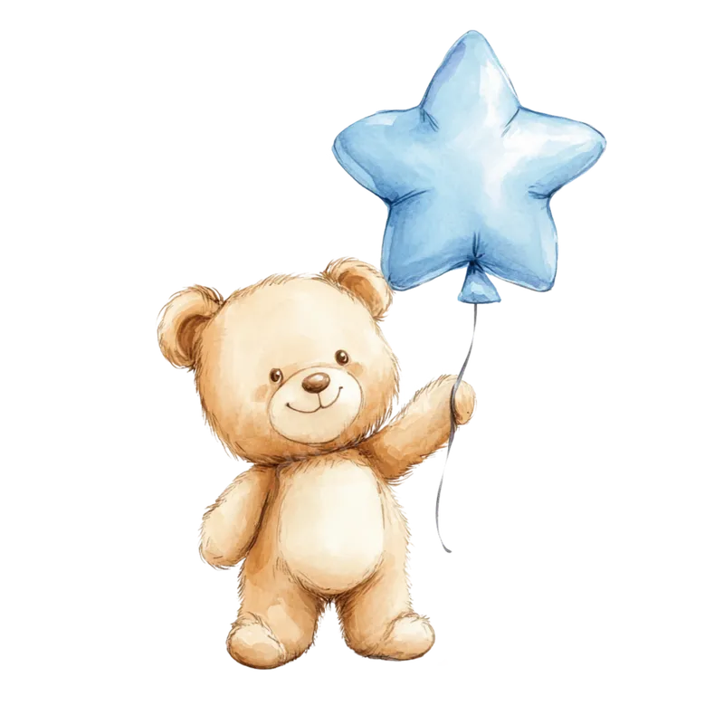 Watercolor Teddy Bear Blue Star Balloon DTF Transfer