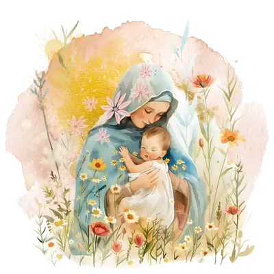Watercolor Virgin Mary & Baby Jesus DTF Transfer | Christian Faith Apparel