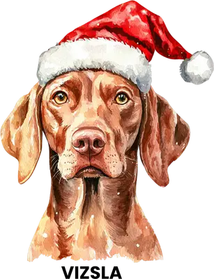 Watercolor Vizsla Dog Christmas DTF Transfer - Ready to Press Santa Hat Design