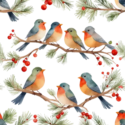 Watercolor Winter Birds Pine Berries DTF Transfer