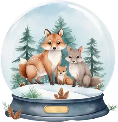 Watercolor Winter Fox & Wolf Snow Globe DTF Transfer