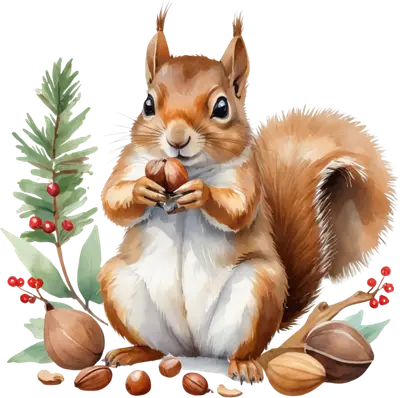Watercolor Woodland Squirrel & Nuts DTF Ready to Press Transfer