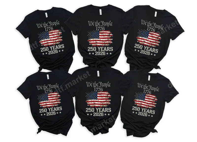 We the People 1776 250 Years 2026 Distressed American Flag DTF Transfer