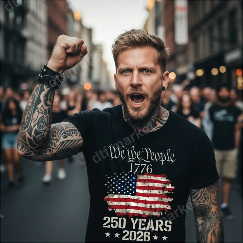 See allEmbrace American pride with our powerful "We the People 1776" DTF transfer. This captivating design features the iconic phrase in a vintage, scroll-like font, paired with a beautifully distressed American flag graphic. Below, the text "250 YEARS 2026" boldly commemorates the upcoming quarter-millennium anniversary of American independence. This ready to press design is a striking statement piece for anyone passionate about liberty and the nation's founding principles. This patriotic design is perfect for veterans, active military, history buffs, conservative Americans, and anyone who cherishes the U.S. Constitution and its rich history. Ideal for celebrating the 4th of July, Memorial Day, Veterans Day, or simply showcasing your patriotism in everyday wear. It makes an excellent gift for civic-minded friends and family, perfect for patriotic rallies, historical events, or themed gatherings. Our premium DTF heat transfer makes customization simple and efficient. It's compatible with a wide range of fabrics, including cotton, polyester, and various blends, ensuring versatility for your projects. Applying this design is hassle-free: use a heat press at 300-325°F for 15 seconds with medium pressure, or easily apply it with a household iron. Forget the tedious weeding process; this iron on transfer is ready to go directly from the film to your garment. Crafted with professional-grade DTF film, this transfer promises vibrant, true-to-color results that stand out. The durable design is crack-resistant, ensuring your apparel transfer maintains its integrity and rich detail wash after wash. The strong adhesive provides excellent adherence and a soft, comfortable feel against the skin, making it ideal for creating high-quality, long-lasting custom apparel.