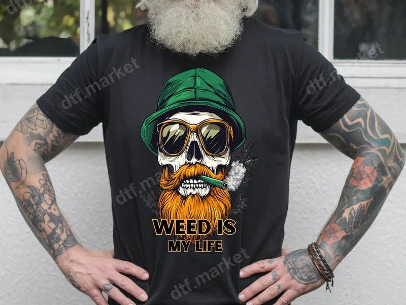 See allUnleash your chill vibe with our 'Weed Is My Life' DTF transfer, featuring a cool skull sporting a green bucket hat, stylish sunglasses, and a distinguished orange beard, all while enjoying a smoke. This vibrant and edgy graphic boldly declares a passion for the plant, making it a standout ready to press transfer for anyone with a sense of humor and a love for cannabis culture. The intricate details, from the smoke trails to the subtle cannabis leaves, ensure this design pops on any garment. This unique heat press design is perfect for enthusiasts of cannabis, adult humor, and skull aesthetics. Ideal for personalizing apparel for casual outings, concerts, festivals, or just lounging at home. It makes a fantastic, cheeky gift for friends who appreciate a good laugh and embrace the laid-back lifestyle, especially around 4/20 or birthdays. Elevate your wardrobe or create custom gifts that truly stand out and spark conversations. Applying this iron on transfer is straightforward and hassle-free. Our DTF transfers work exceptionally well on a wide range of fabric types, including cotton, polyester, and various blends, ensuring versatility for your projects. For best results, use a heat press at 300-325°F for 15 seconds with medium pressure, then cold peel the film. For those without a heat press, a household iron can also be used following specific instructions. The best part? No weeding required, saving you time and effort. Experience superior quality with our professional-grade apparel transfer. Each design is printed with vibrant, long-lasting inks that resist cracking and fading, maintaining their brilliance wash after wash. The finished heat press ready design offers a soft, smooth feel on the garment, unlike bulky vinyl. Crafted with premium DTF film and strong adhesive, this t-shirt transfer ensures excellent durability and a professional finish every time, making your custom creations last.