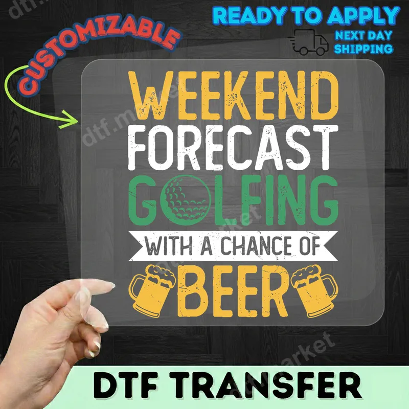 Weekend Forecast Golfing Beer DTF Transfer Funny Golfer Design