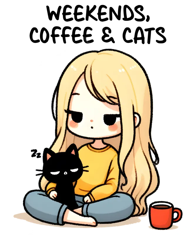 See allThis adorable DTF transfer features a charming chibi-style blonde girl, peacefully sitting cross-legged with a sleepy black cat nestled in her lap. A warm red coffee mug rests beside her, perfectly embodying the text above: "WEEKENDS, COFFEE & CATS." This premium heat transfer design captures the ultimate cozy, introverted vibe, making it a perfect ready to press graphic for anyone who cherishes quiet moments with their feline friend and a good cup of joe. Ideal for cat moms, coffee enthusiasts, and anyone who thrives on relaxed weekend energy, this design is a fantastic way to express your personal style. It makes a thoughtful gift for birthdays, holidays, or just because, for friends, family, or even yourself. Perfect for students, remote workers, or anyone who values comfort and a bit of lighthearted fun in their everyday apparel. Our versatile heat press ready transfer works beautifully on a wide range of fabric types, including cotton, polyester, and various blends. Applying this iron on transfer is simple with a professional heat press (recommended at 300-325°F for 15 seconds with medium pressure) or even a household iron for smaller applications. The best part? There’s absolutely no weeding required, saving you time and effort. Crafted with professional-grade DTF film, this t-shirt transfer ensures vibrant colors, exceptional durability, and a soft, flexible feel that resists cracking and peeling. Each apparel transfer comes with a strong adhesive, guaranteeing a long-lasting, high-quality finish on all your customized garments and accessories.