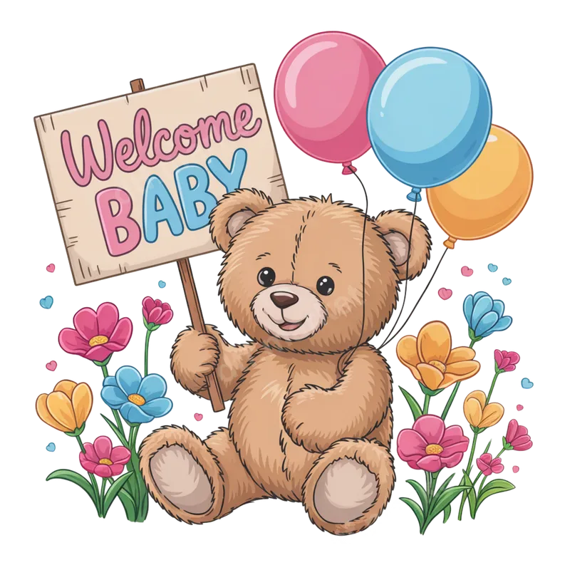 Welcome Baby Teddy Bear Balloons DTF Transfer Baby Shower Design