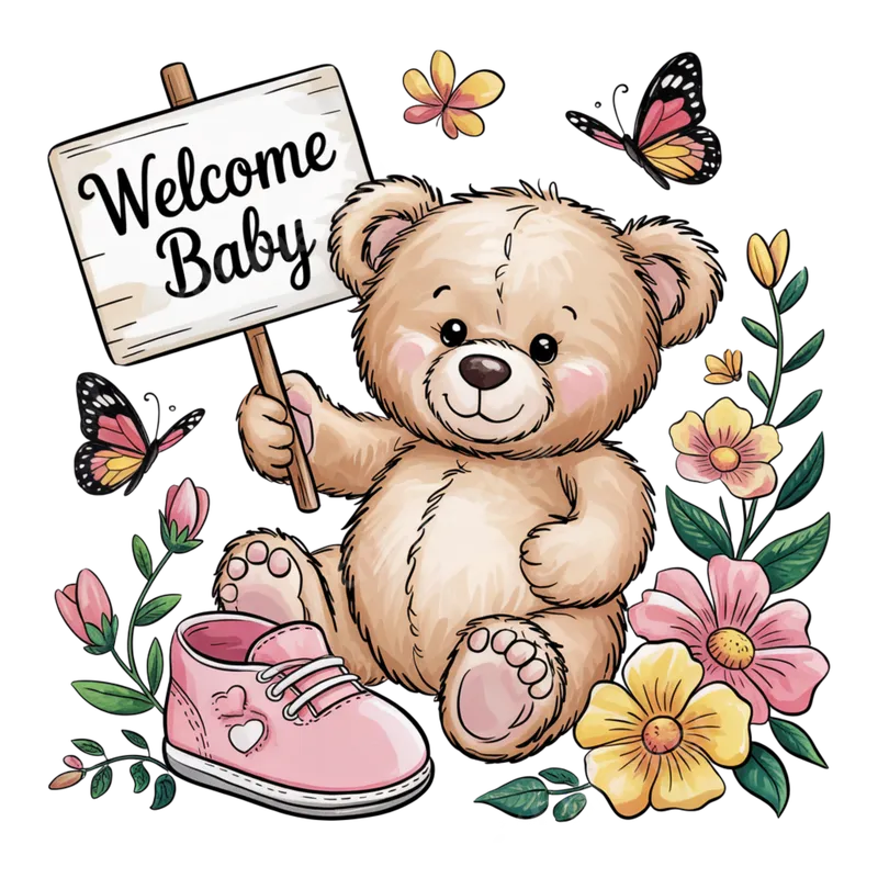 Welcome Baby Teddy Bear DTF Transfer | Cute Baby Shower Heat Press Design