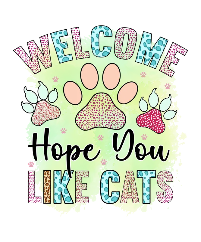 Welcome Hope You Like Cats DTF Transfer | Paw Print Animal Print Design