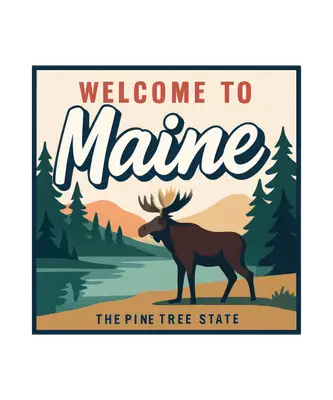 Welcome to Maine Moose DTF Transfer | Vintage Pine Tree State